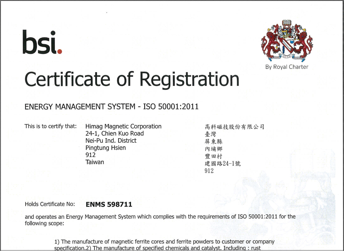 取得ISO 50001:2011认证